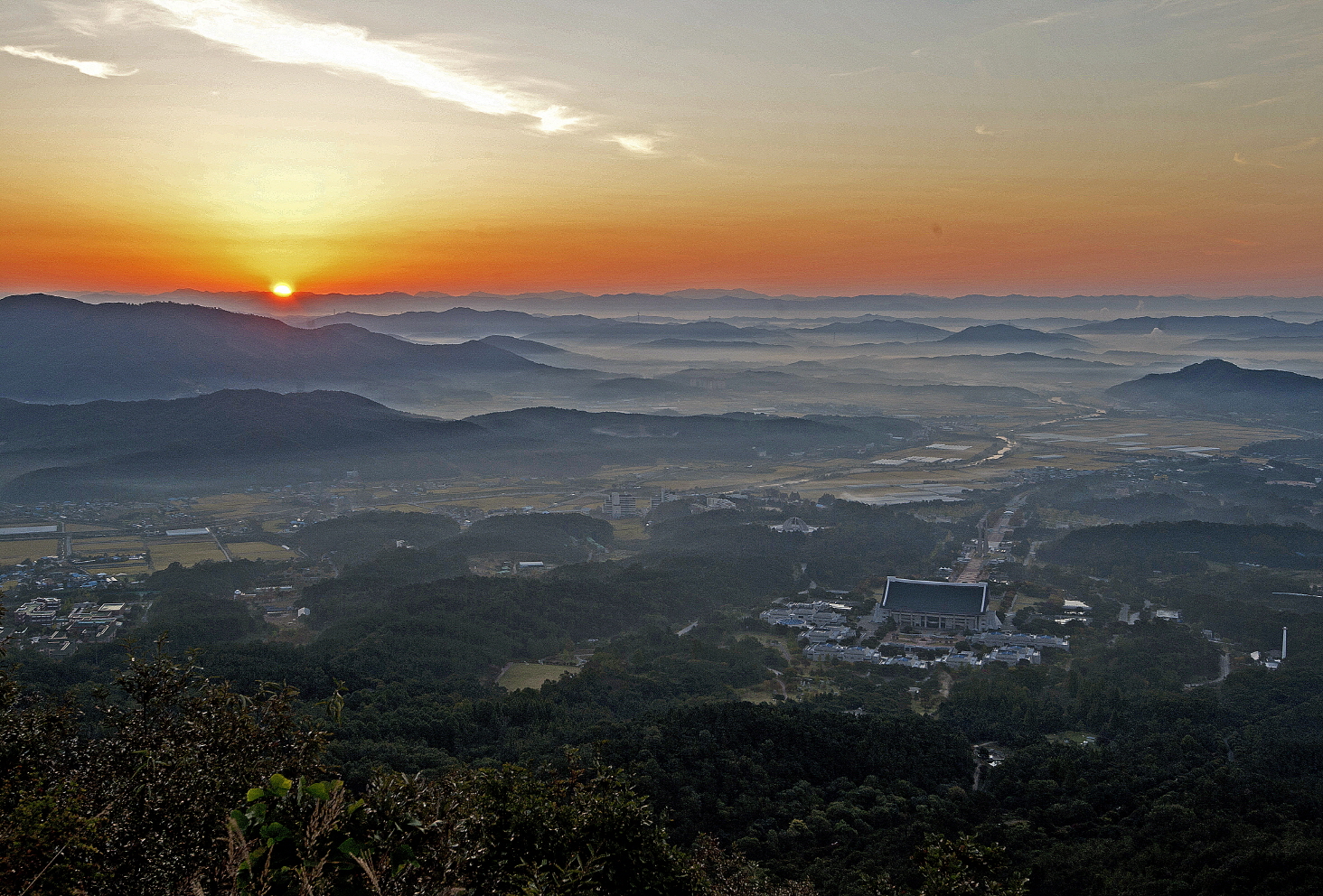 기대했던 동쪽으로부터 산을 가로지르는 운무의 흐름대신에