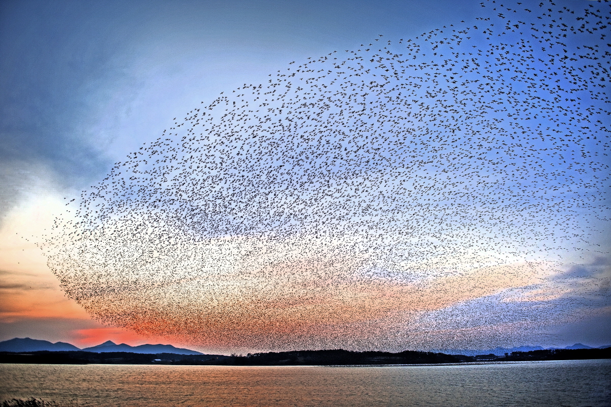 석양을 등지고 기대이상의 가창오리의 화려한 공연이 펼쳐졌습니다