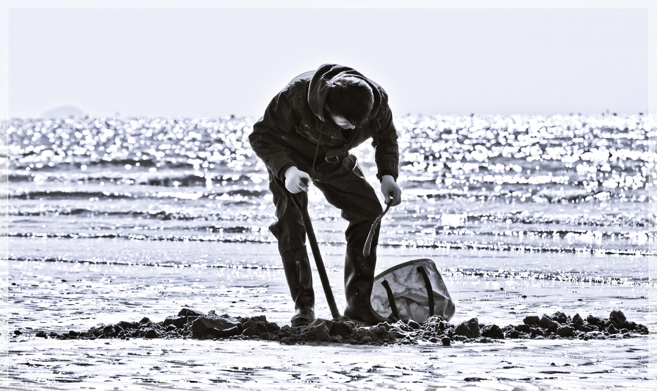 때 맞춰 개불잡는 분이 오셔서 좋은 모델이 되어주시네요...