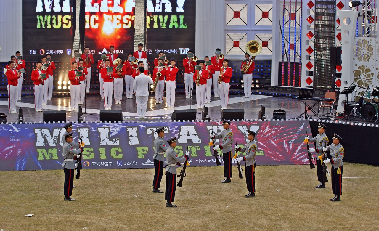 의장병들의 절도있는 시범을 보여주는 장면.