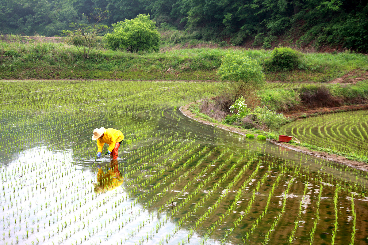 뜬모를하는 농부의 모습