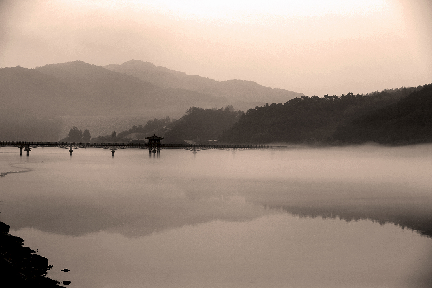물안개 피는 안동 월영교의 아침입니다.
