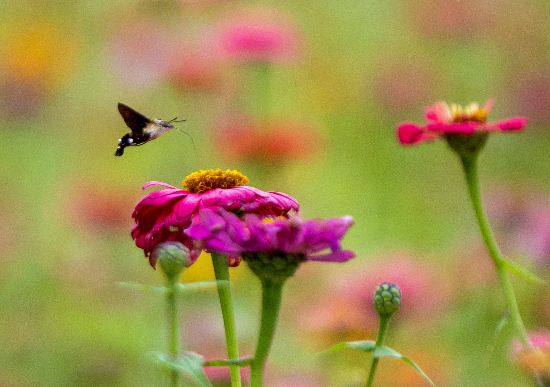 백일홍과 호박벌나방.