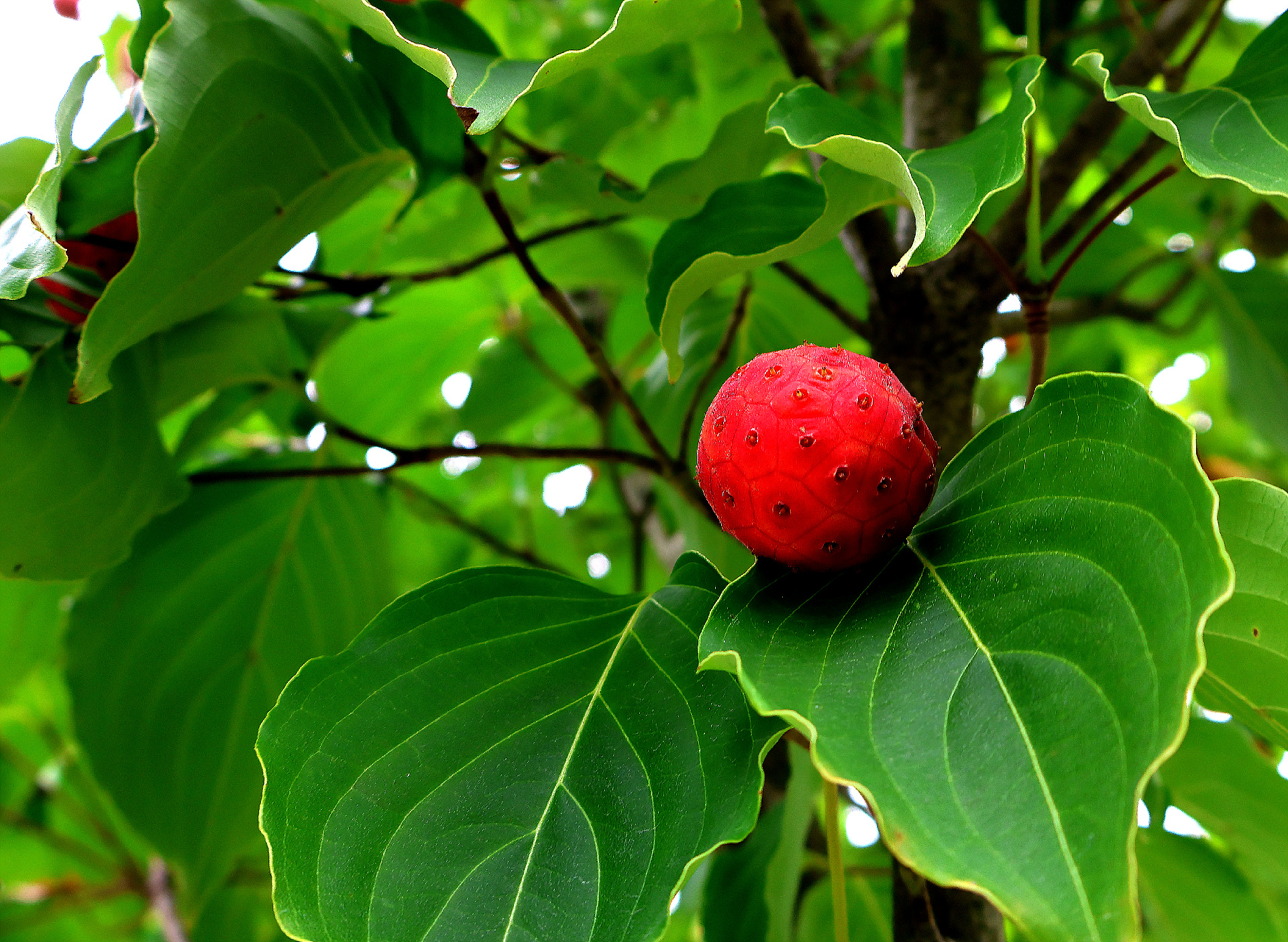 빨갛게 익은 산딸 나무 열매가 가져 온