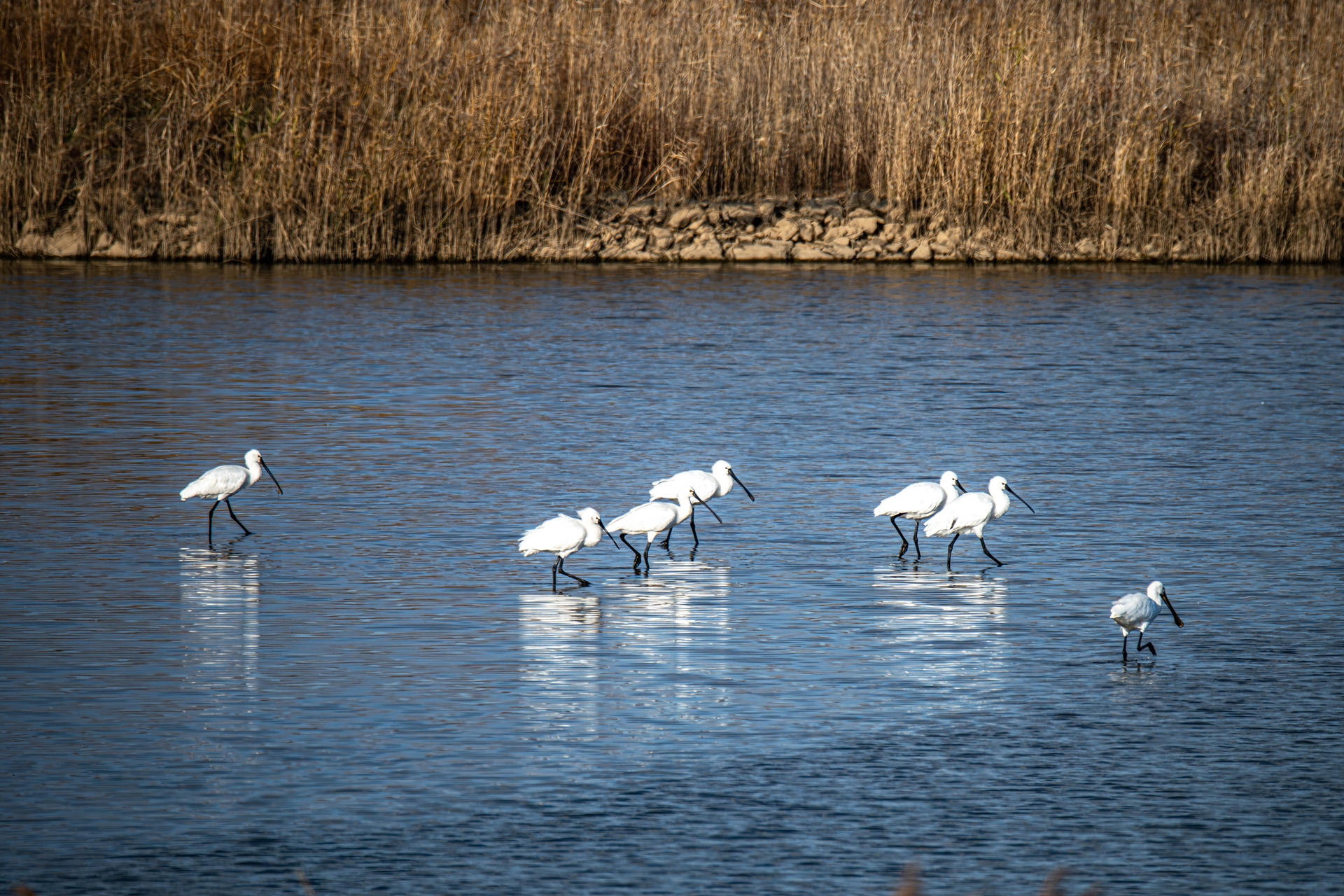 먹이활동중인 노랑부리 저어새