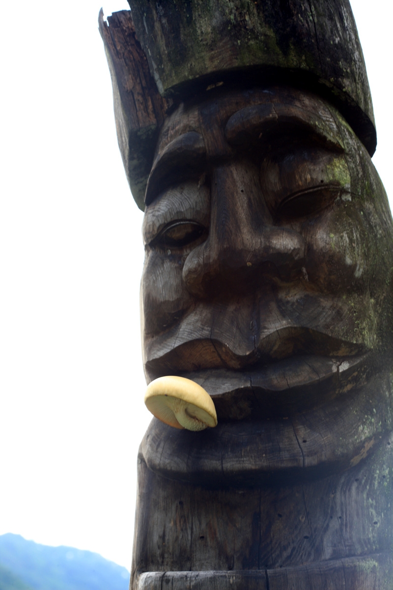 장승에 버섯이 피어났어요