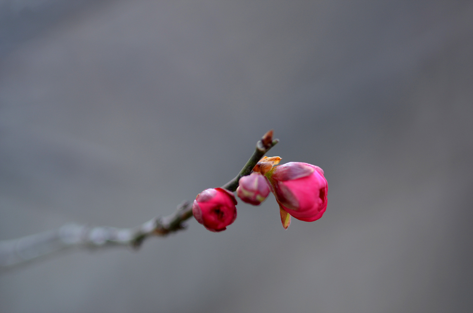 후원에 홍매가 방긋