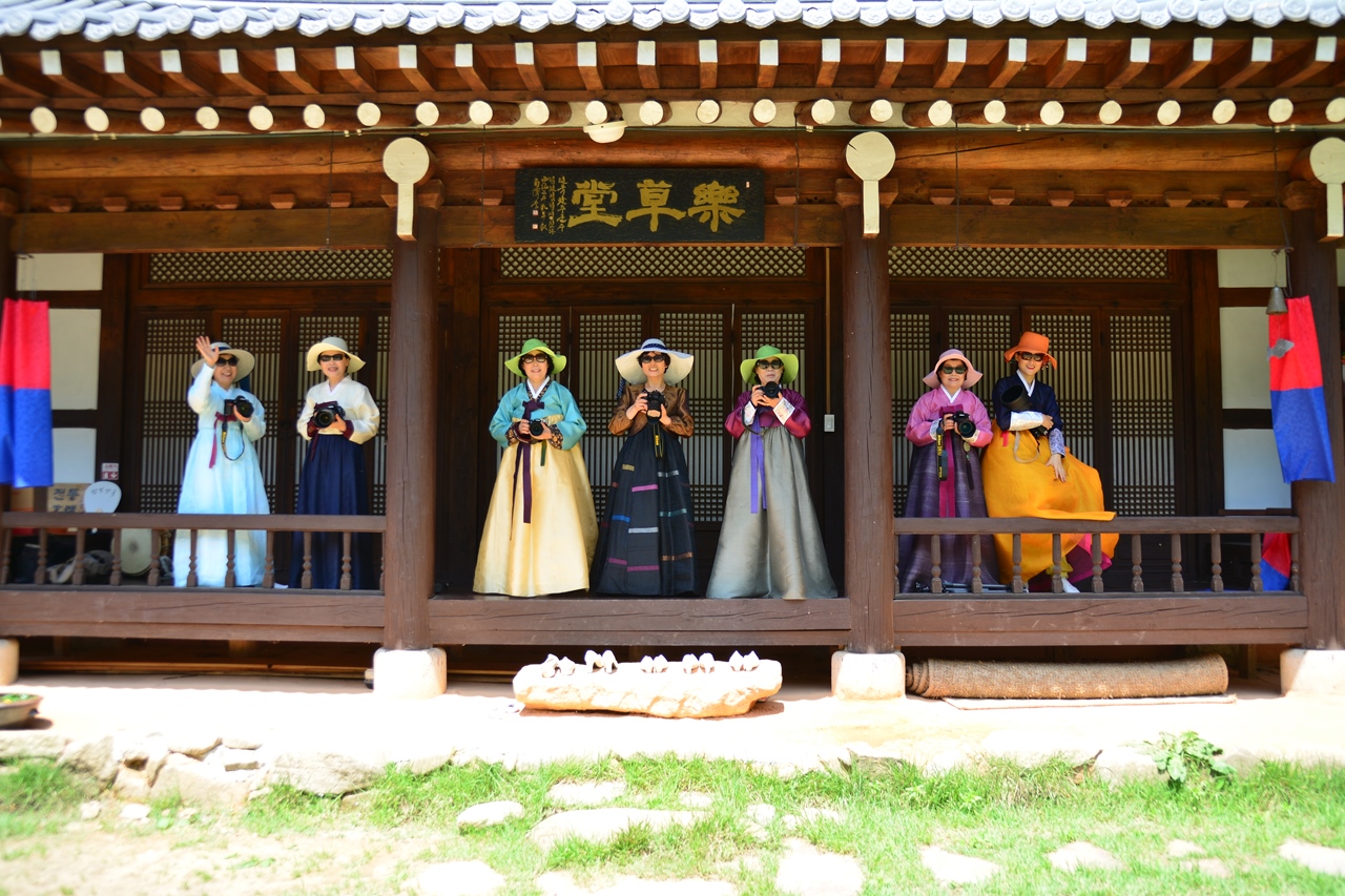 사진반 제자들이 펼치는 코믹 한복 패션 길놀이 현장입니다.