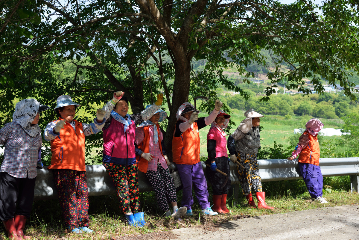 농촌 노인회 회원님들이 열심히 일하신뒤 갖는 즐거운 휴식시간..