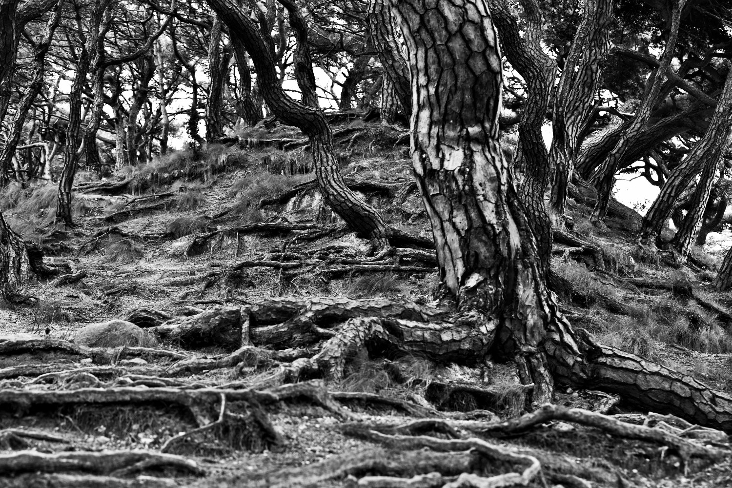 선산으로 겉으로 드러난 뿌리와 수피가 갖은 세파와