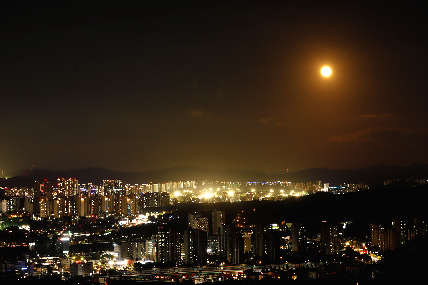 보름달이 차오른 도시 야경