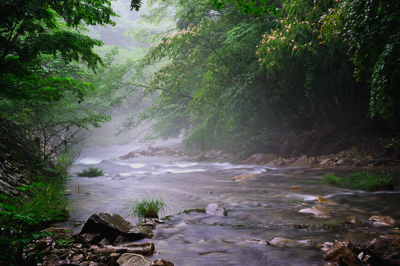 빗물은 꽃잎을 싣고 여울로 가고