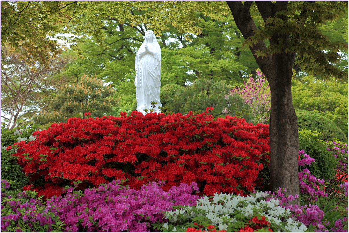 성당 입구 주차장에 들어서는 순간 눈이 휘둥그래 졌습니다.