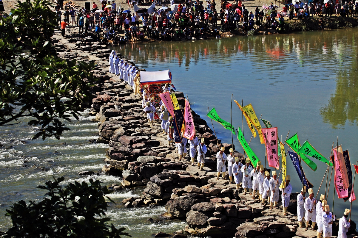 농다리축제에 상여군들...