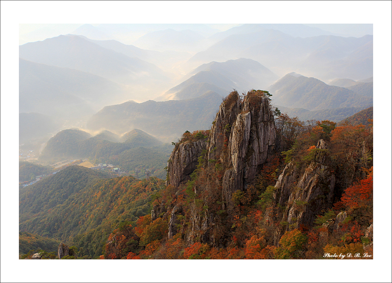 운해상황은 조금 아쉬웠지만 장군봉과 그뒤로 겹겹이 쌓여 있는 능선들이 아름다웠습니다.