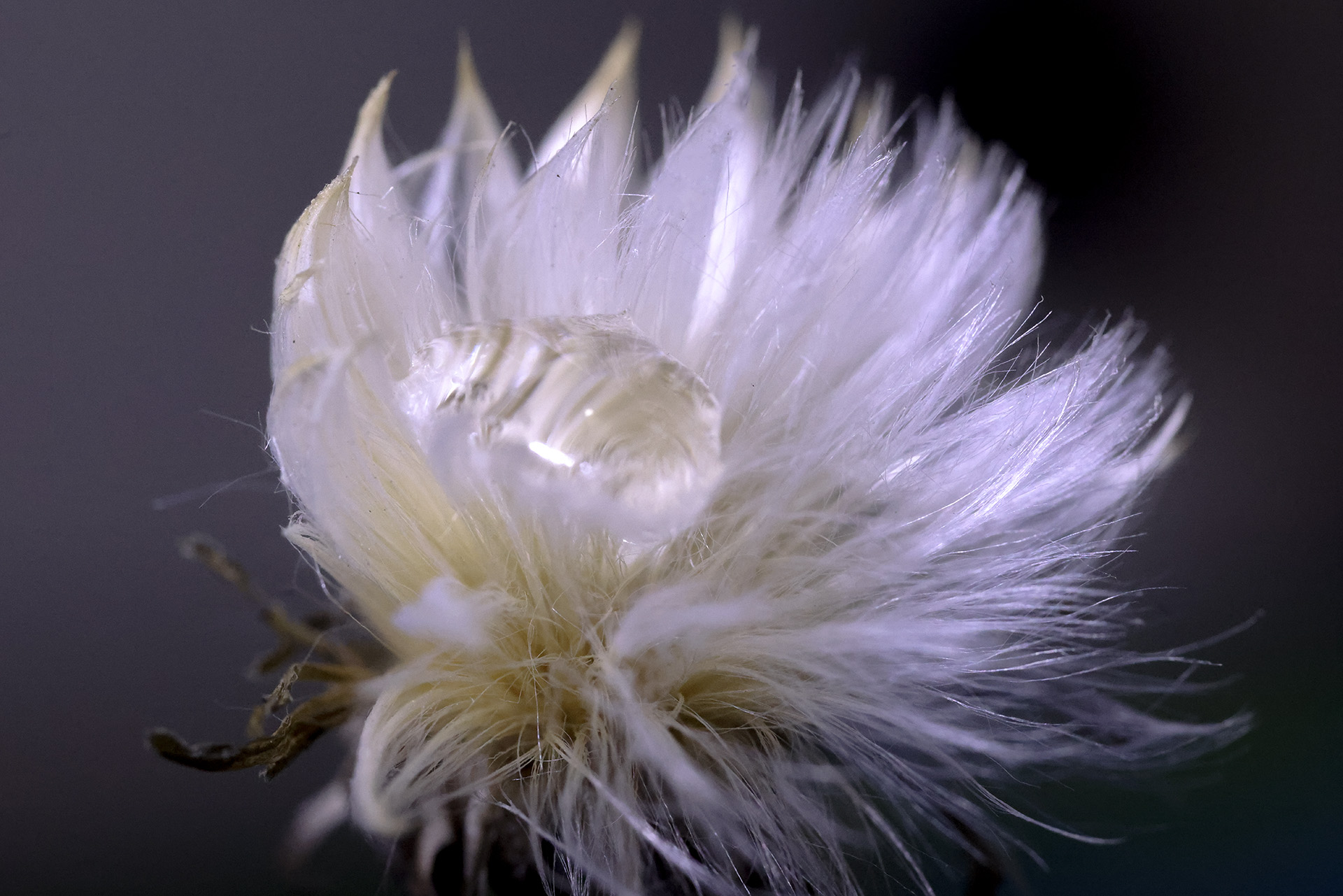 솜털같은 쑴박귀 꽃술에 물방울를 담아 올려 봅니다.