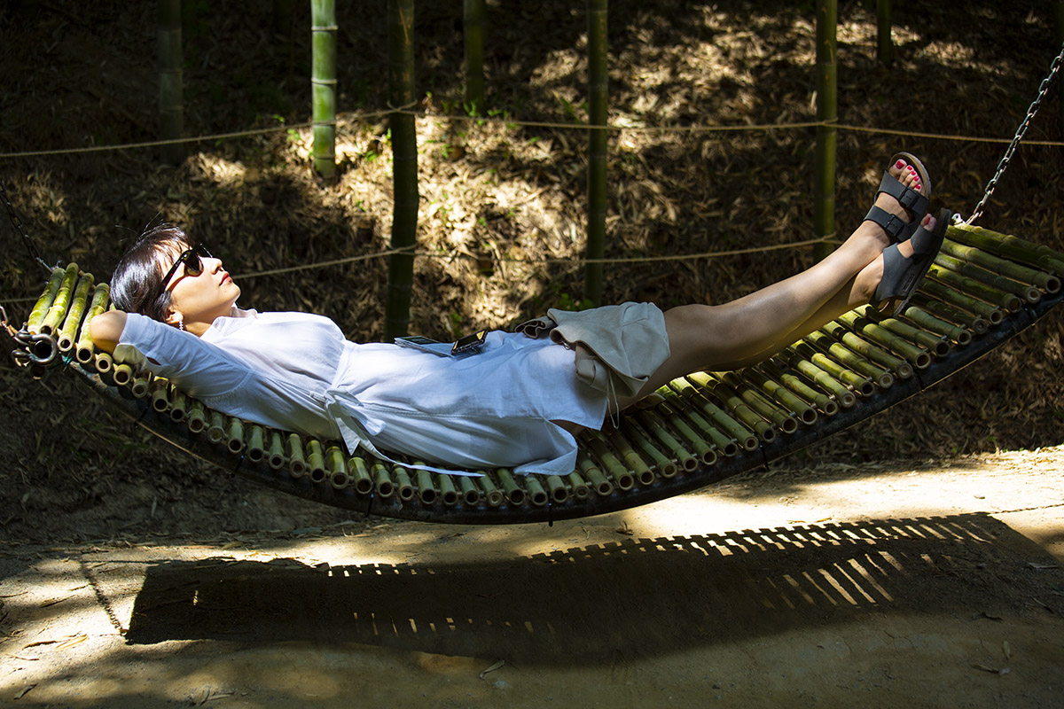 죽녹원 숲속에서 햇빛을 즐기고 있는 멋진 여인