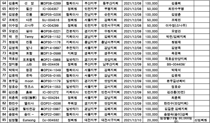[알림] 2022년 연회비 입금자 명단 ( 2021.12.13. ~12.19)
