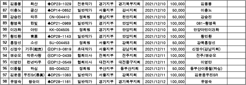 [알림] 2022년 연회비 입금자 명단 ( 2021.12.06. ~12.12 )