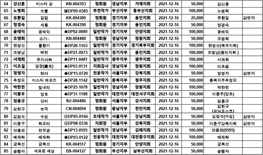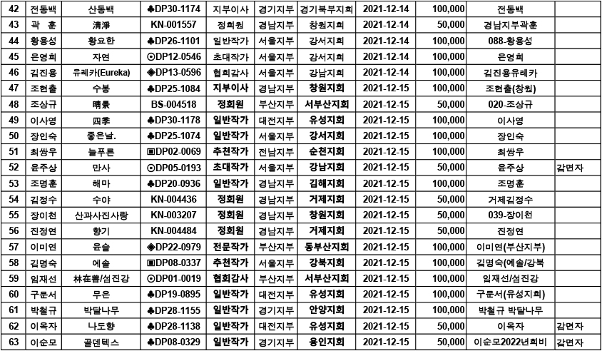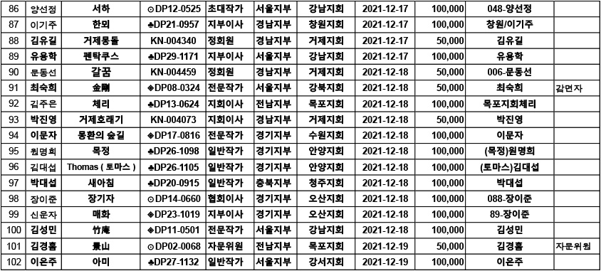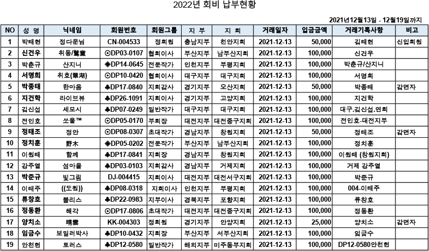 [알림] 2022년 연회비 입금자 명단 ( 2021.12.13. ~12.19)