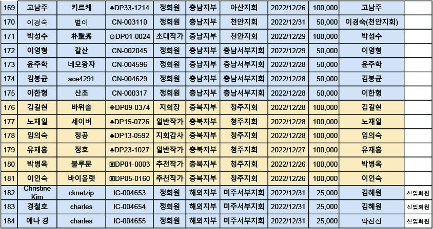 [알림] 2023년도 연회비 납부내역(2022년12월19일~2022년12월25일까지)