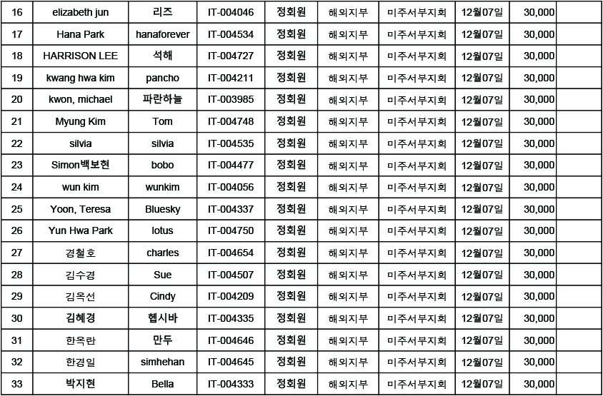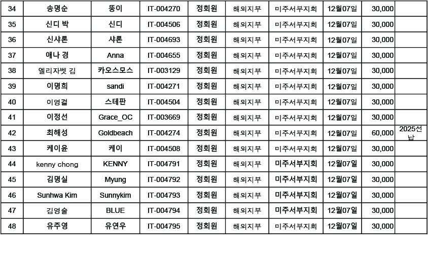[알림] 해외지부 미주서부지회 2024년 회비 일괄납부 내역