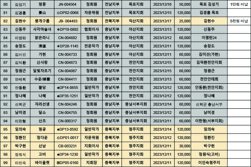 [알림] 2024년도 연회비 납부내역(2023년12월11일~2023년12월17일까지)