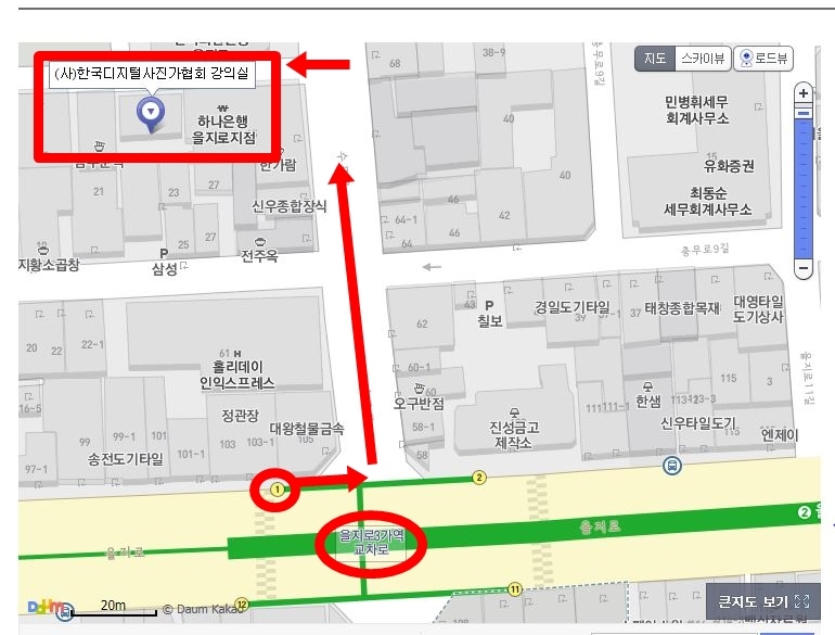 - 하나은행 을지로 지점에서 우회전 후 10M 직진