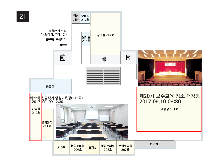 2017년 9월 9일- 10일 제22차 신규작가 양성교육 및 제20차 보수교육 시설이용에 관해 안내입니다.