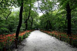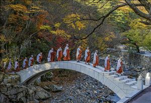 문턱에서 오색 찬란한 단풍의 계절에