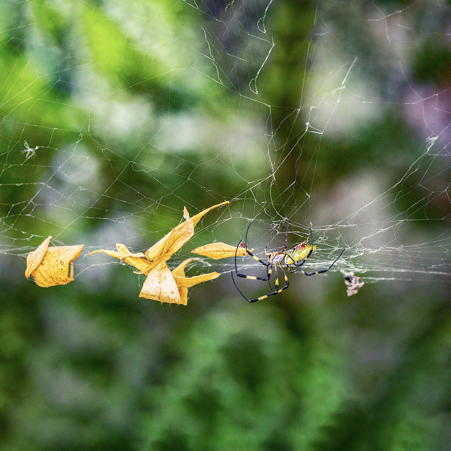 벌레를 잡기 위한 거미줄도 겨울이 되어가니 벌레는 붙지 않고 나뭇잎만 붙어 있어 먹고 살기 힘들어 지는 것 같습니다.
