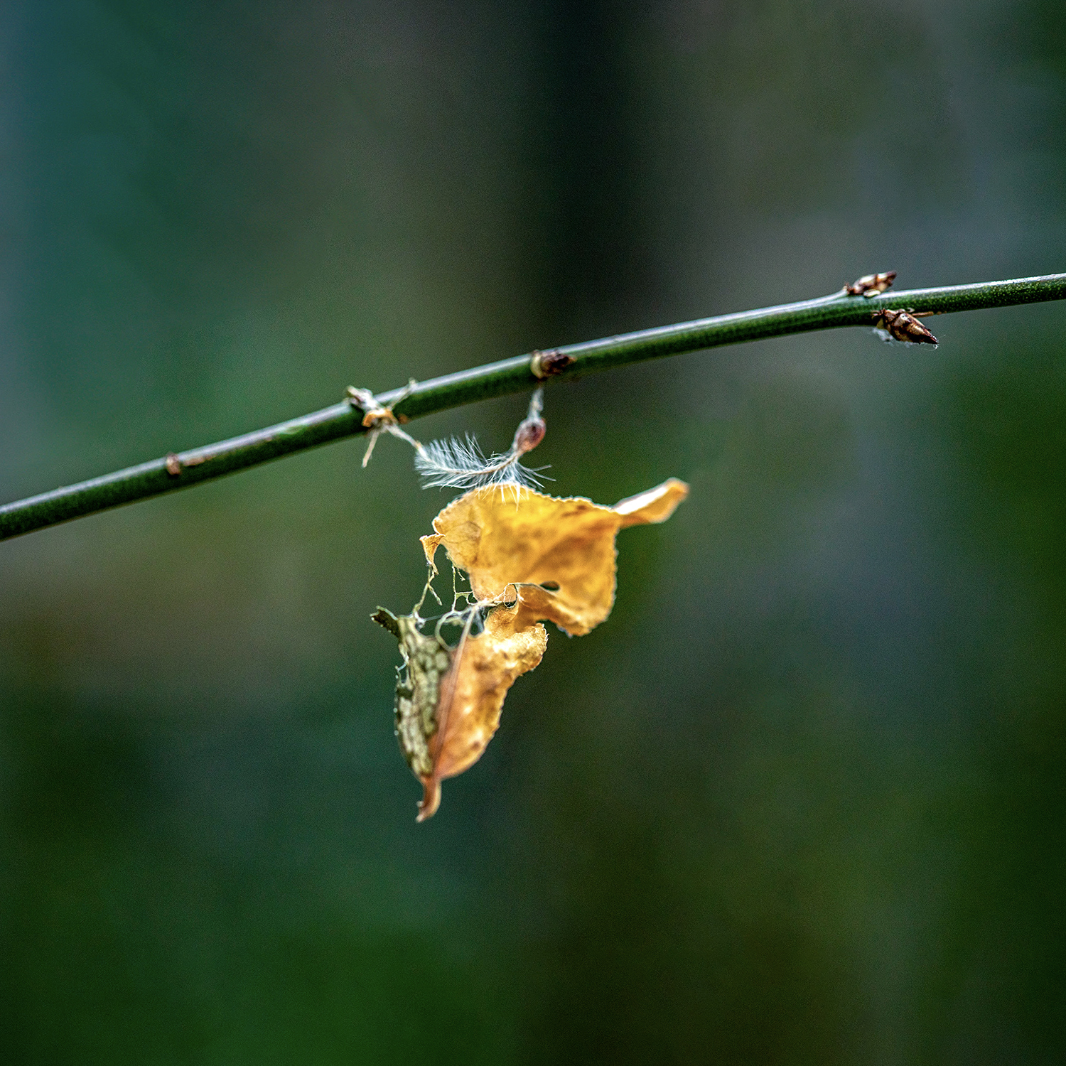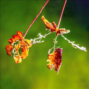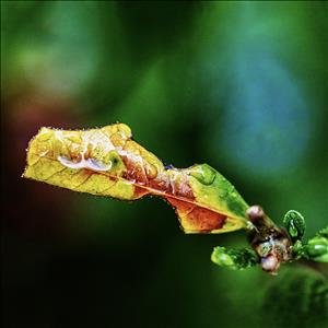 벌레에 다 빼앗기고 앙상한 뼈만 남은 나뭇잎, 거미줄에 걸린 나뭇잎과 가시에 찔린 나뭇잎. 이런 와중에도 새생명이 태어나기도 합니다.