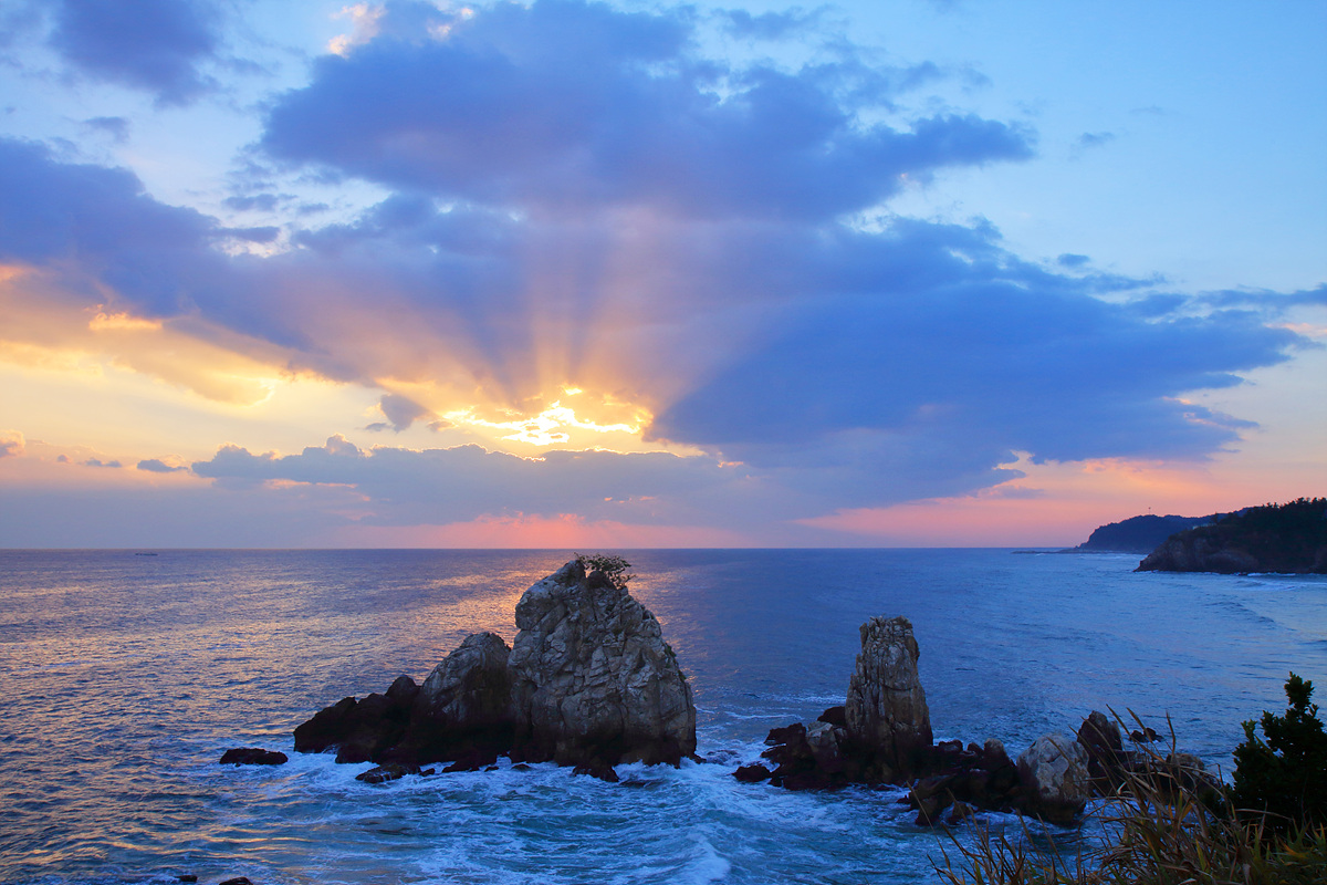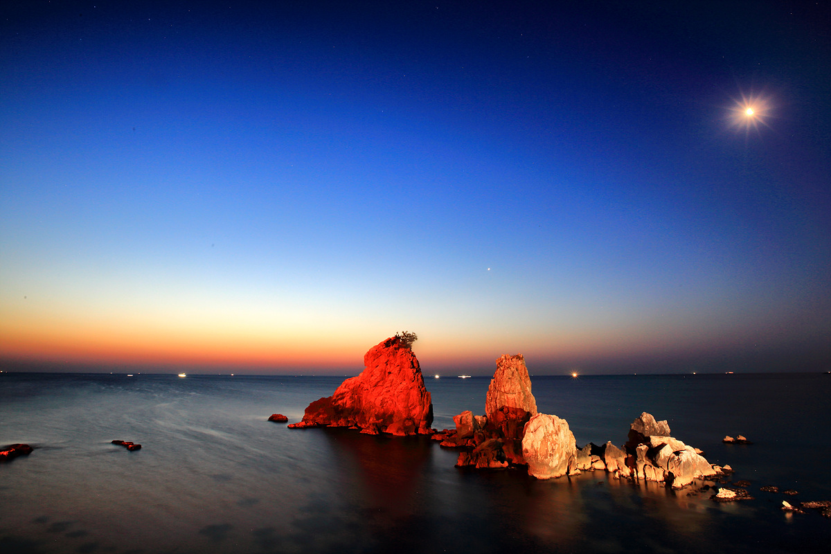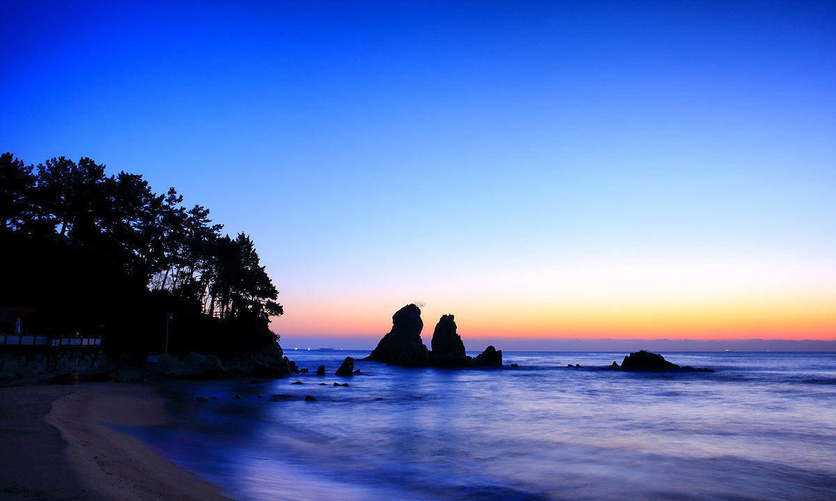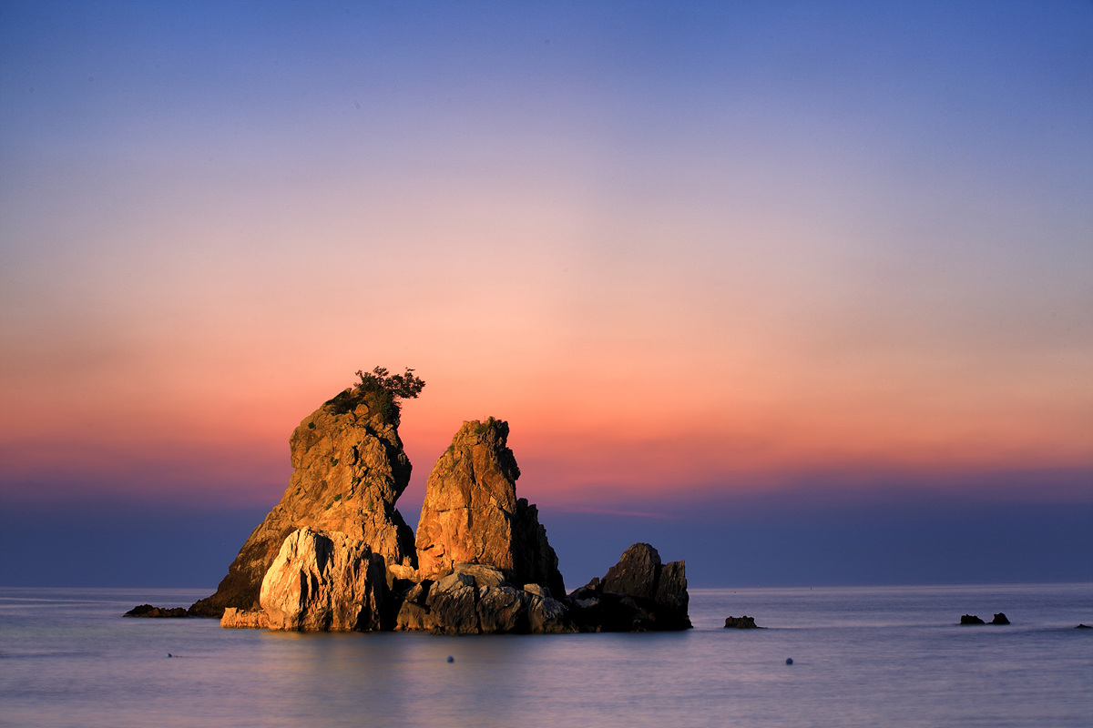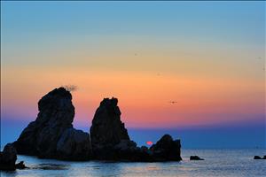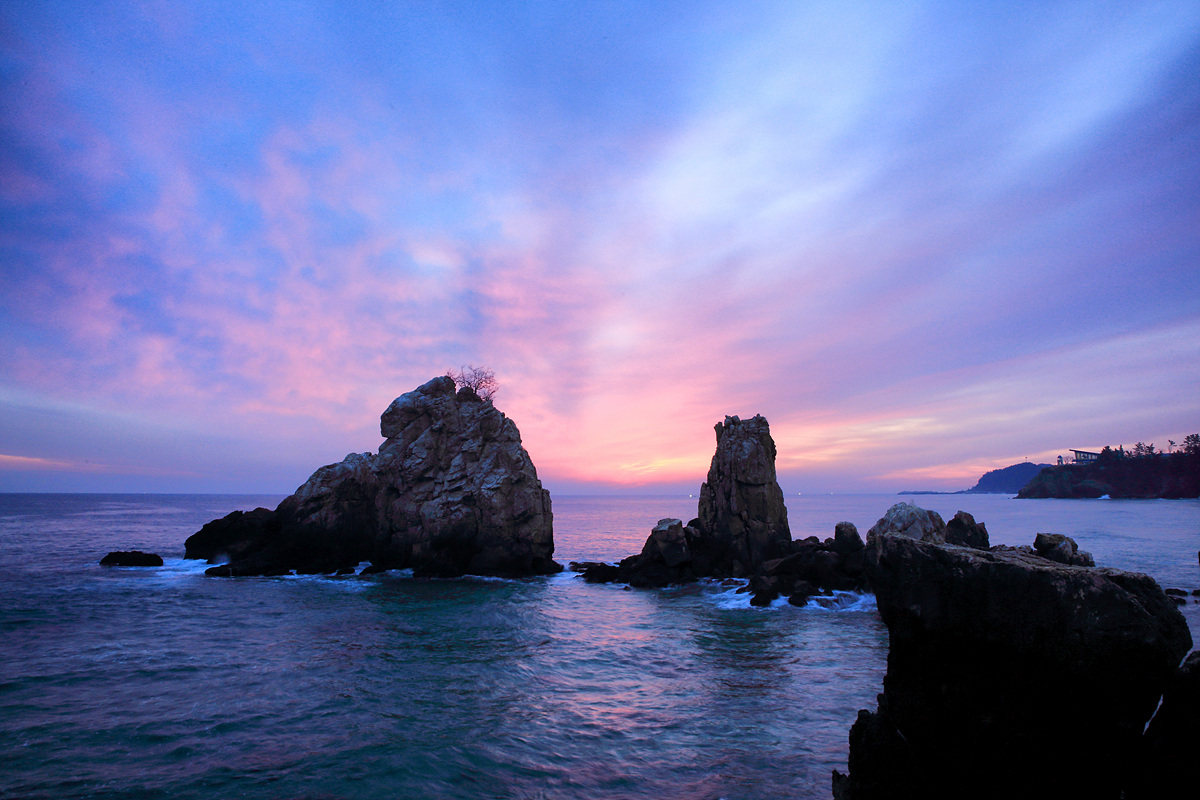 추암해변의 형제바위를 단일 주제로 정하여