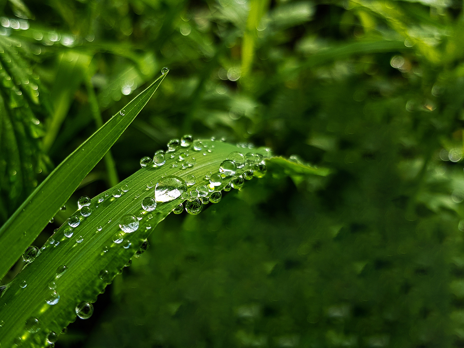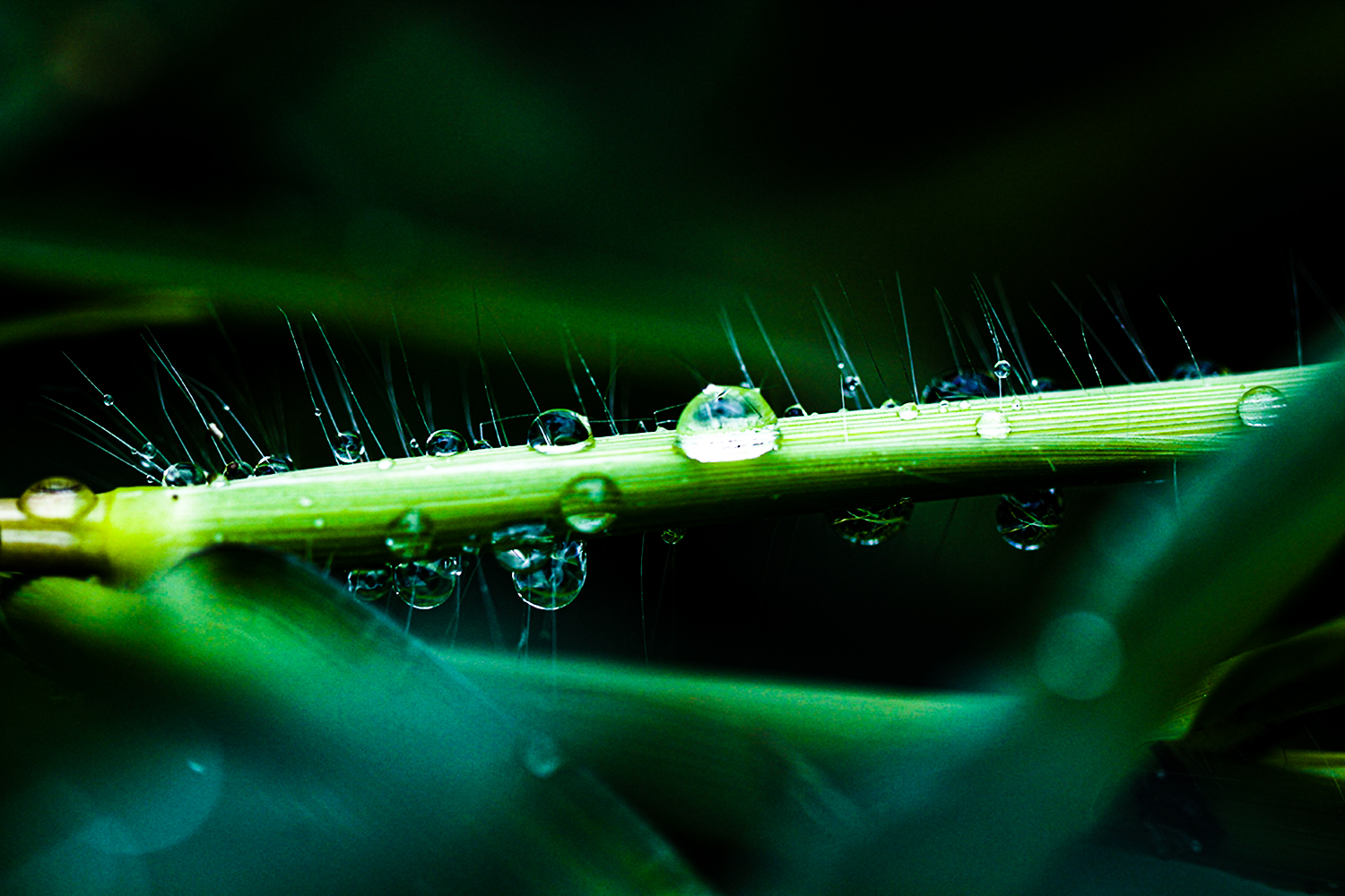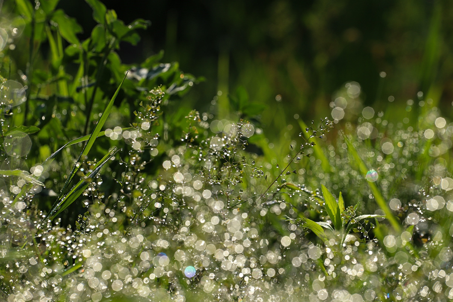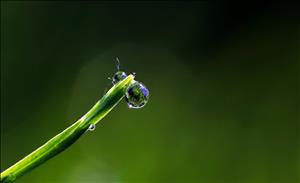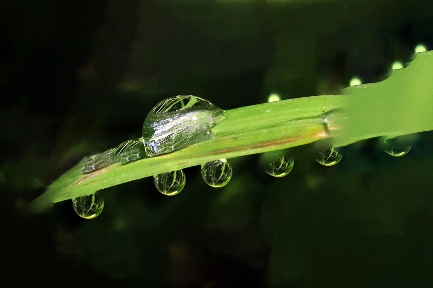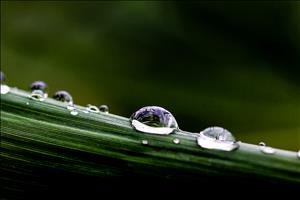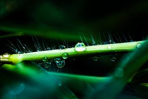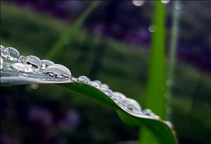 풀잎에 맺힌 이슬방울들이