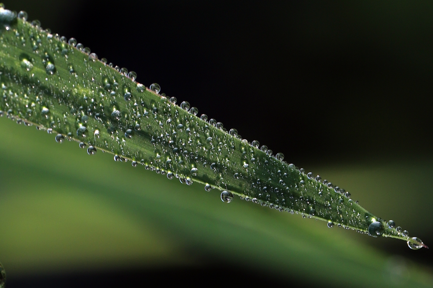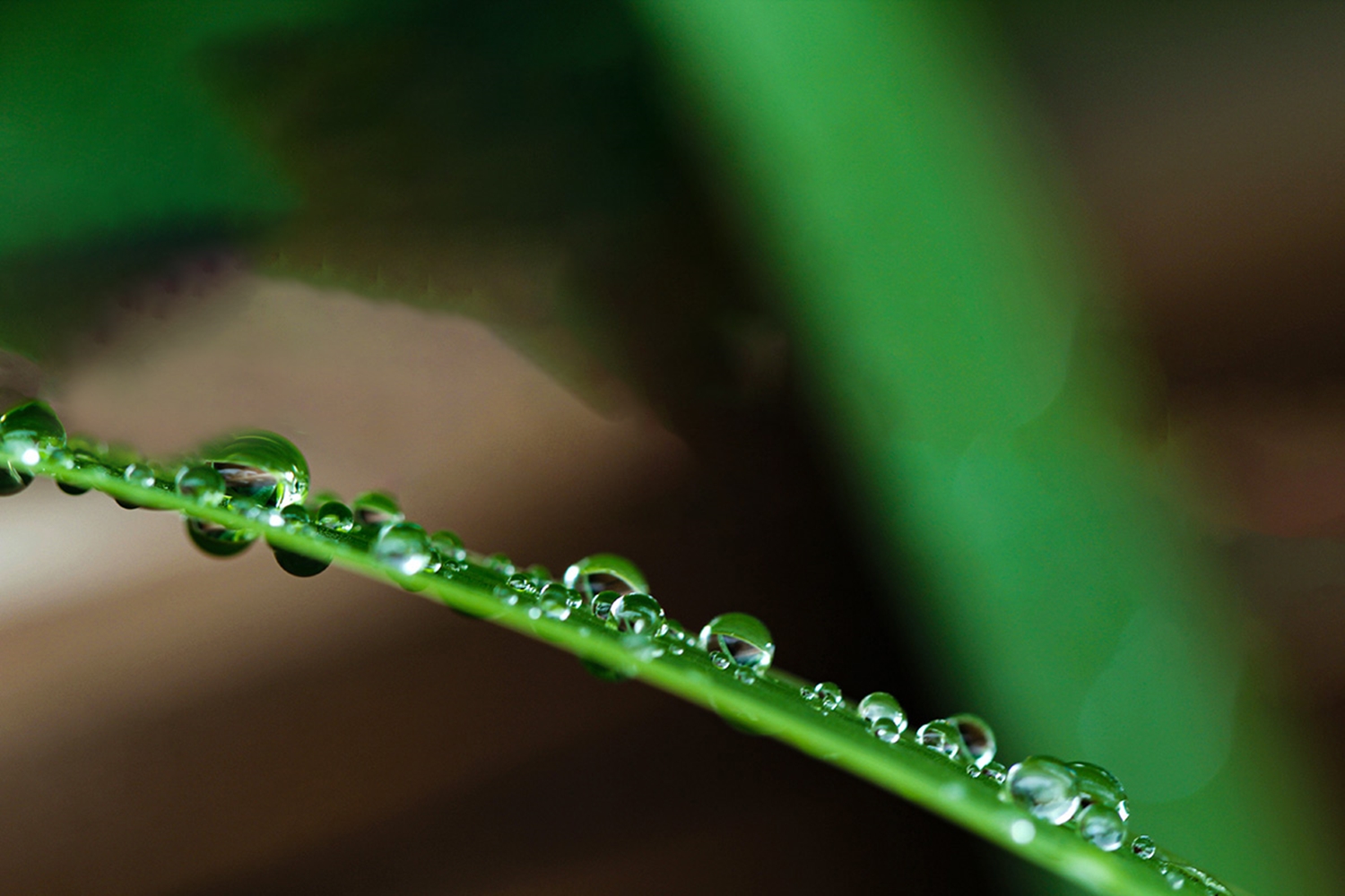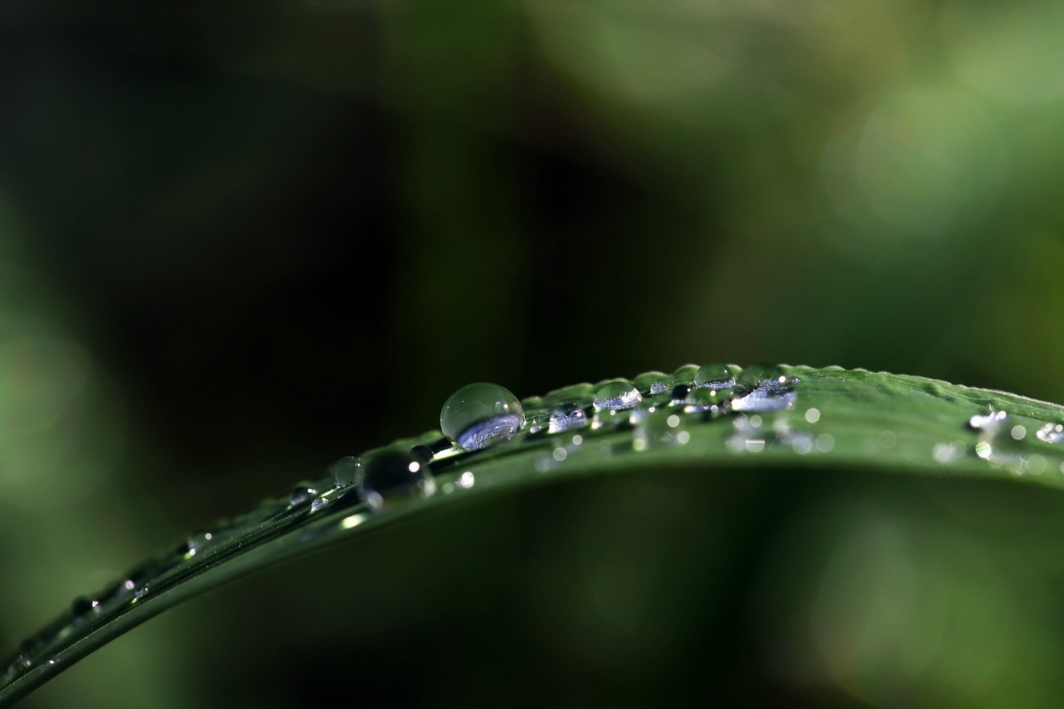 풀잎에 맺힌 이슬방울들이
