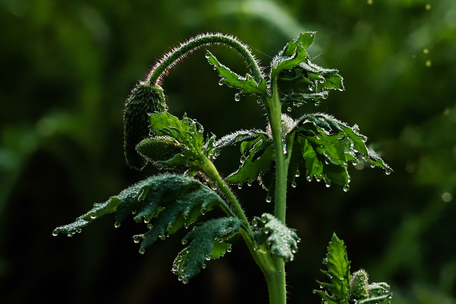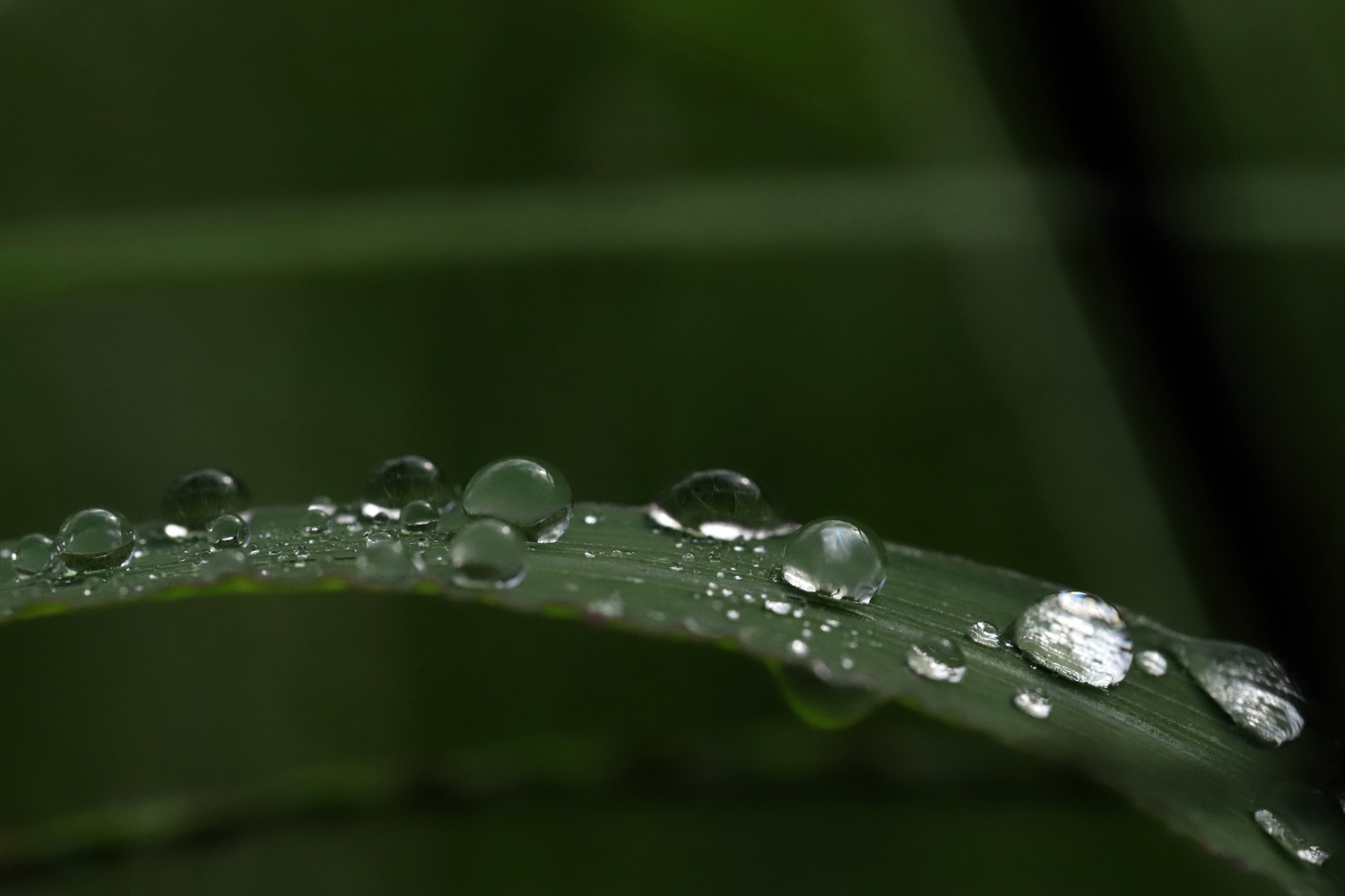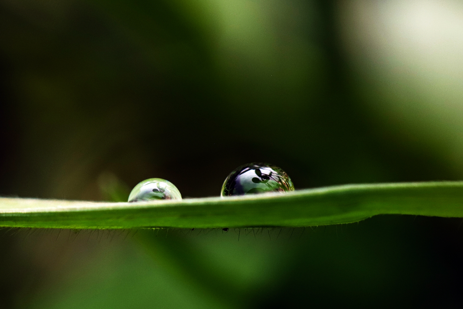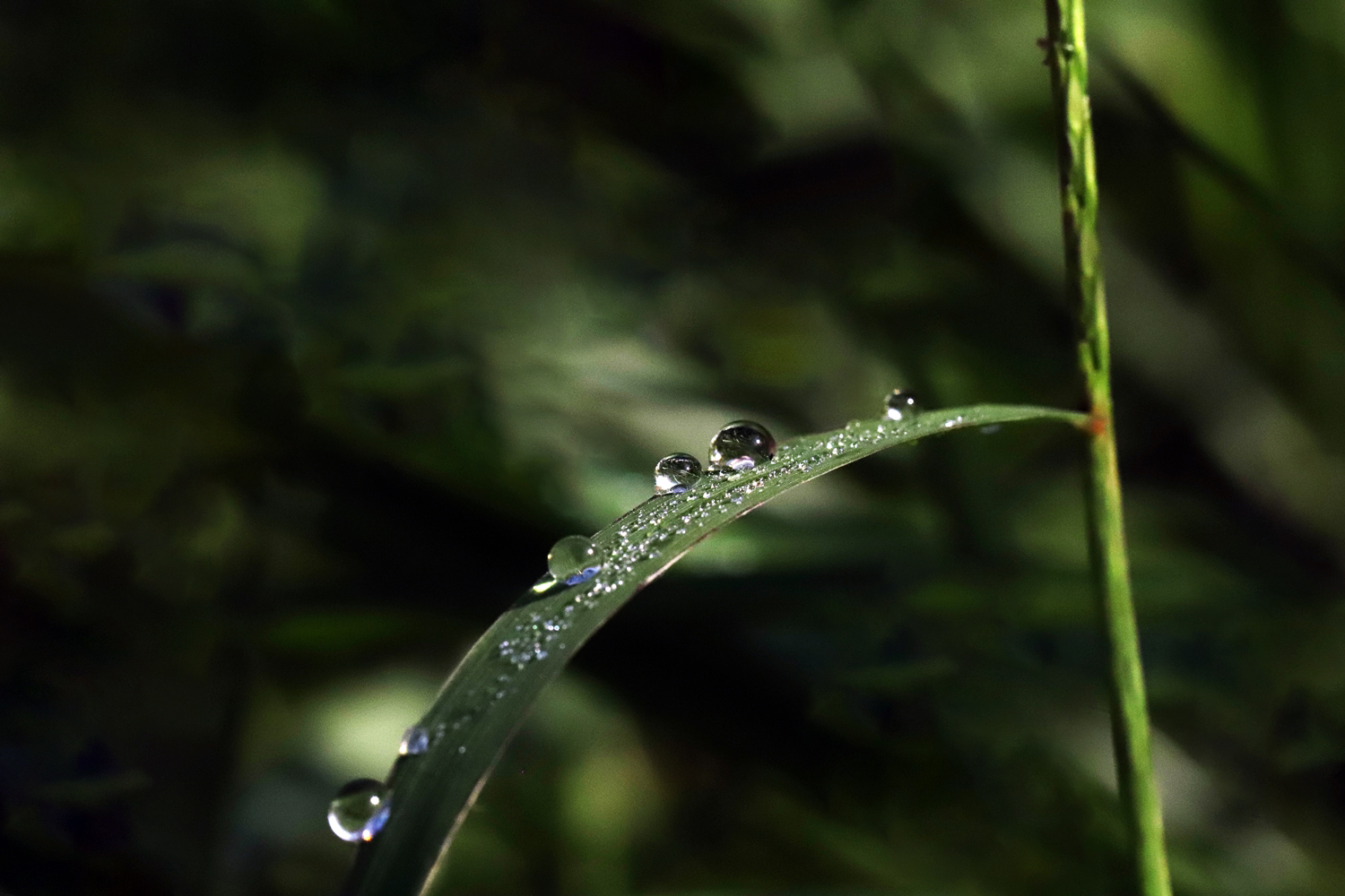 풀잎에 맺힌 이슬방울들이