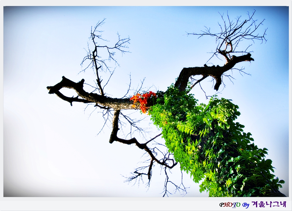 어느 야외식당에서 멋진 고목나무에 능소화가 어우러진 소경을 담아 보았읍니다