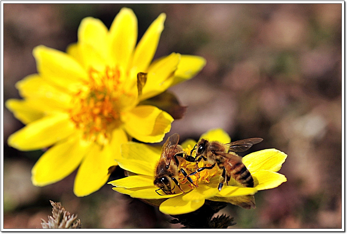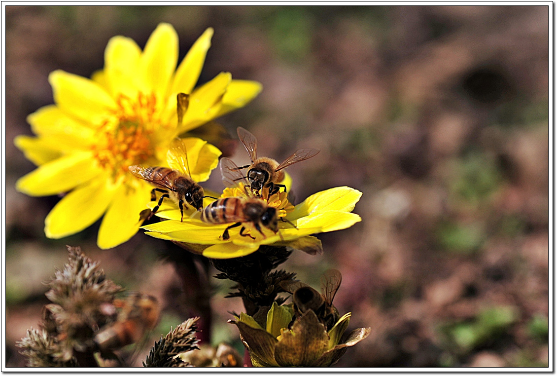 양지바른곳에 화사한 자태와 향내에 취해 꿀벌이 빠쁘게 움직입니다.