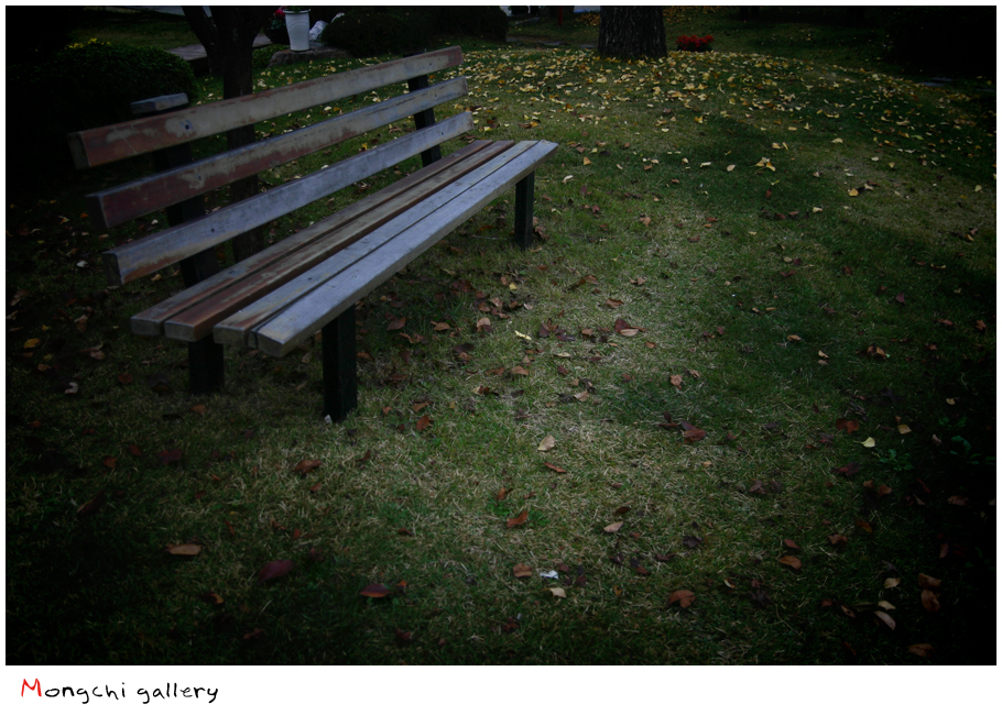 가을 벤취 옆엔 낙엽이 쌓여간다.