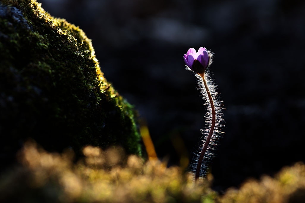 고고하고 품위있는 자태로 살아가는 아름다운 노루귀 한 송이