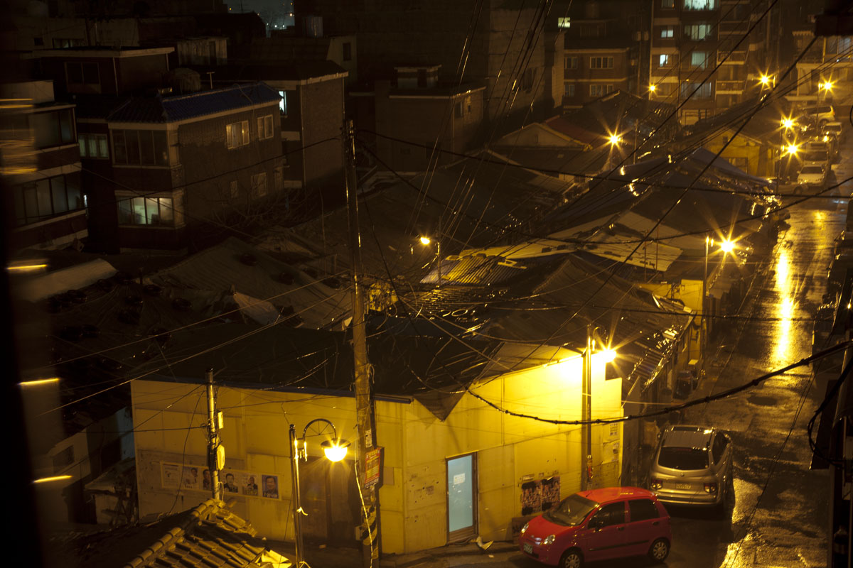 빗속에서 습기를 잔뜩 먹음은 가로등 불빛이 슬프다