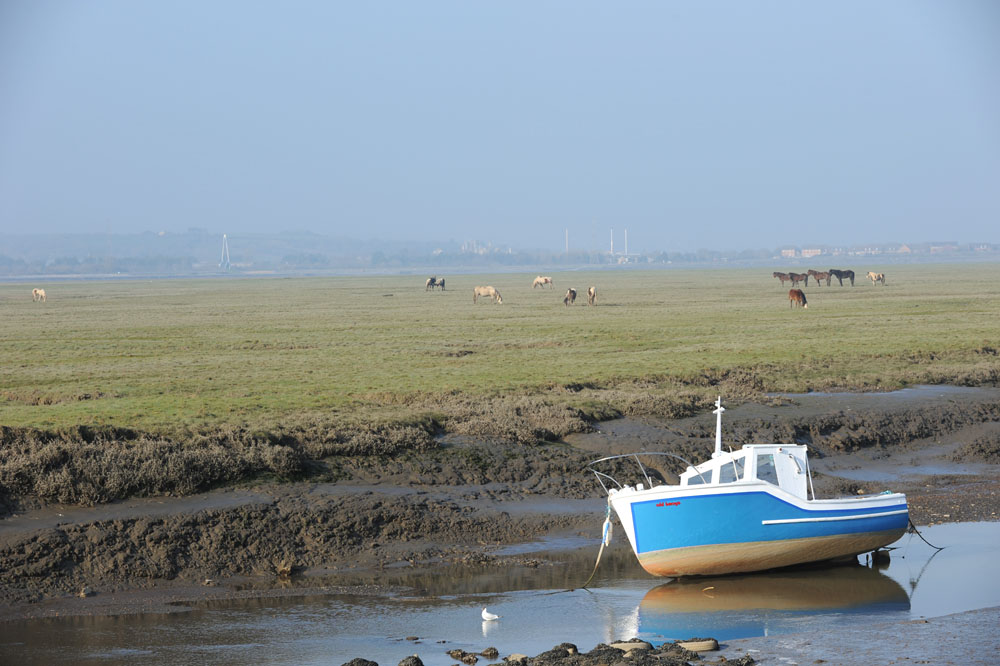야생마들과 썰물갯가 배한척의 휴식