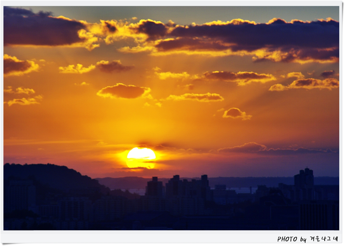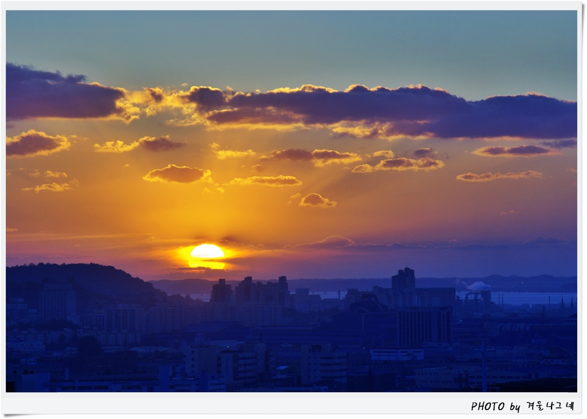 아름다운 일몰입니다. 왼쪽이 자유공원이고 오른쪽 연기나는 공장이 북성포구입니다..