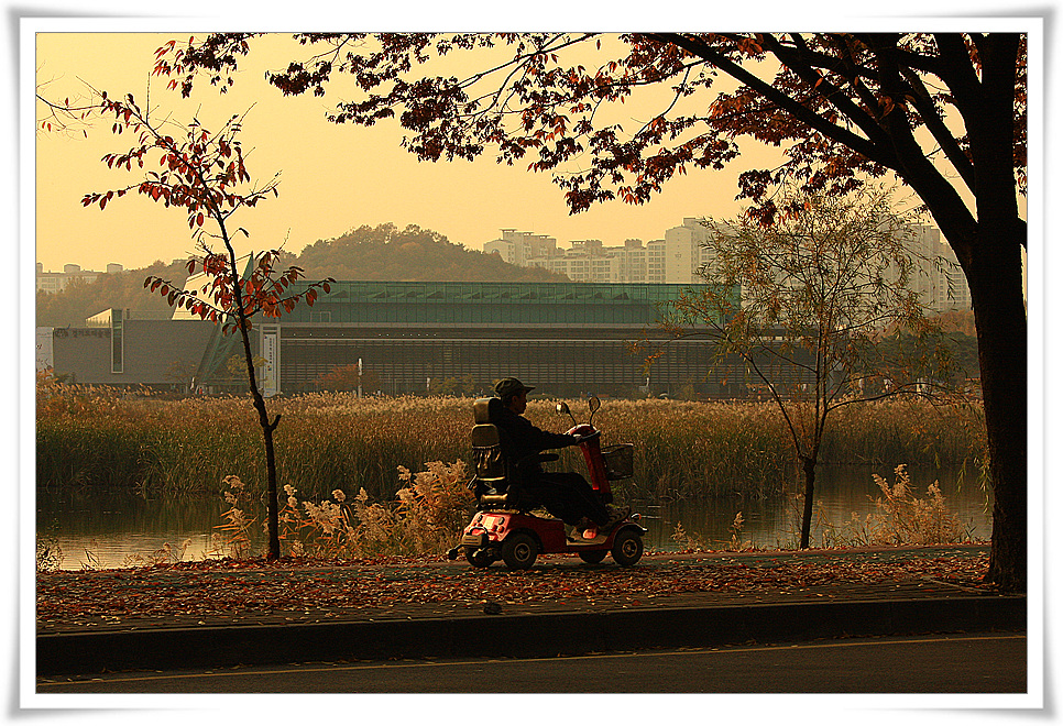 몸이 불편한 어르신의 가을 단풍이 보고파서 유원지를 산책한답니다.
