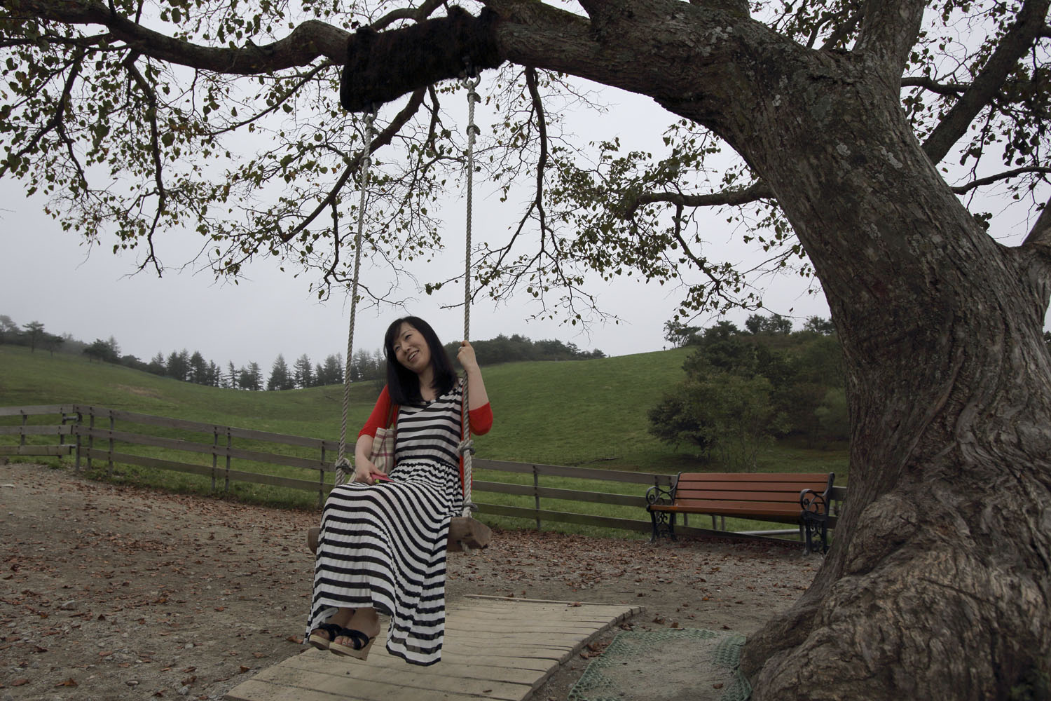 아가씨가 그네에서 내려오면 않되는데 싶어서