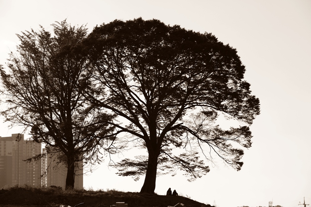 잘 생긴 두그루의 나무만이 덩그라니 언덕위에 서있다.