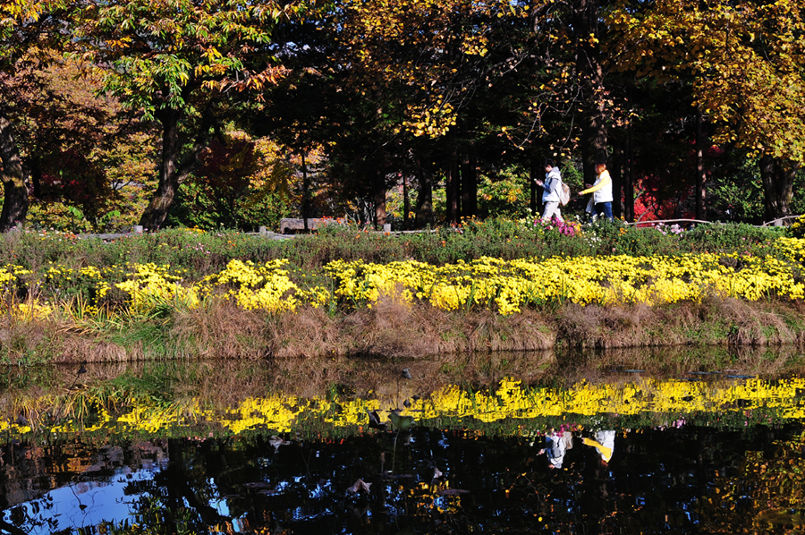 남이섬에서 연인들의 데이트 하는 모습들을