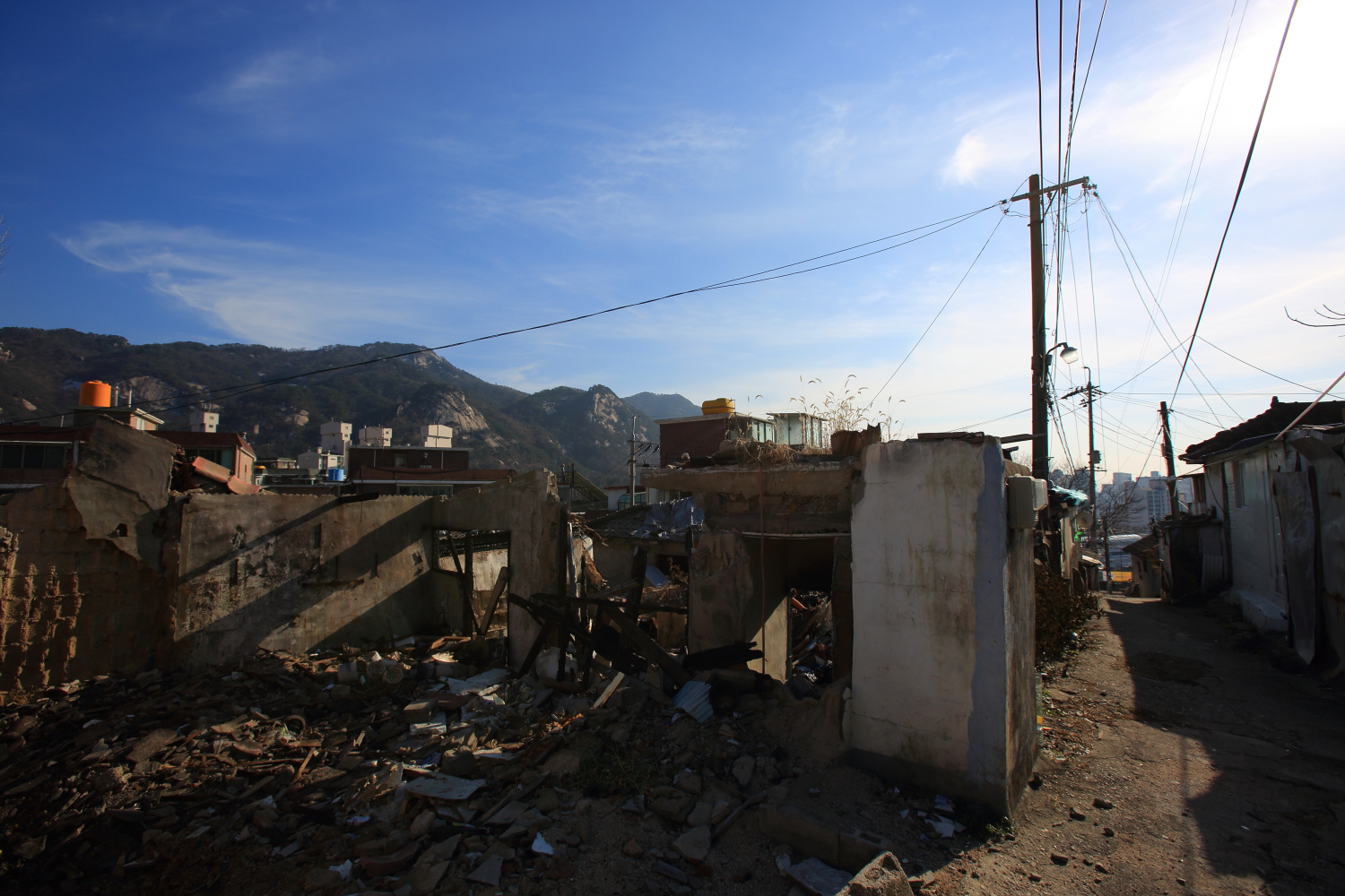 건물이 목조가 주 여서 이 주위의 마을의 달동네 맨 위쪽 마을집은