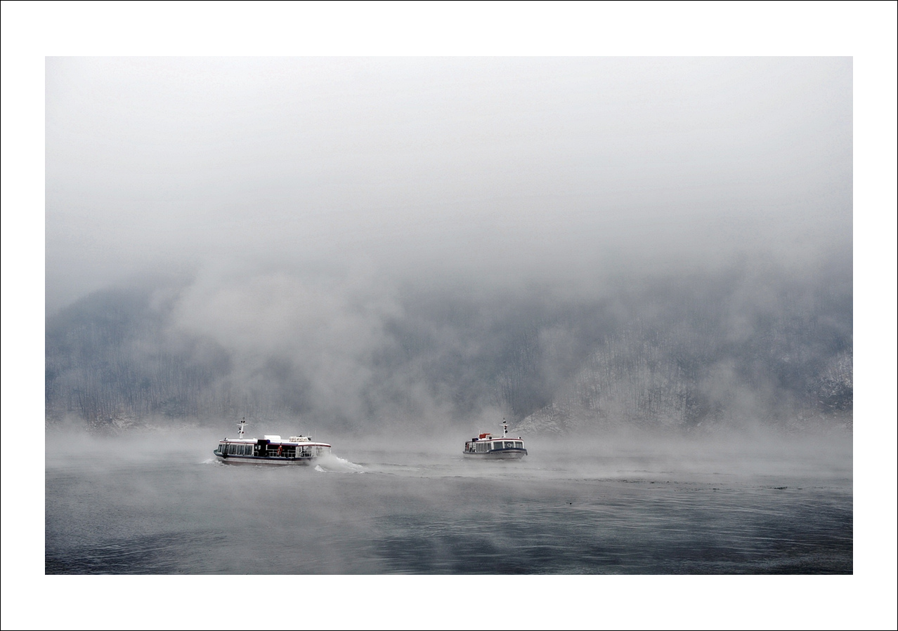 안개속의 소양강 다목적댐에서..