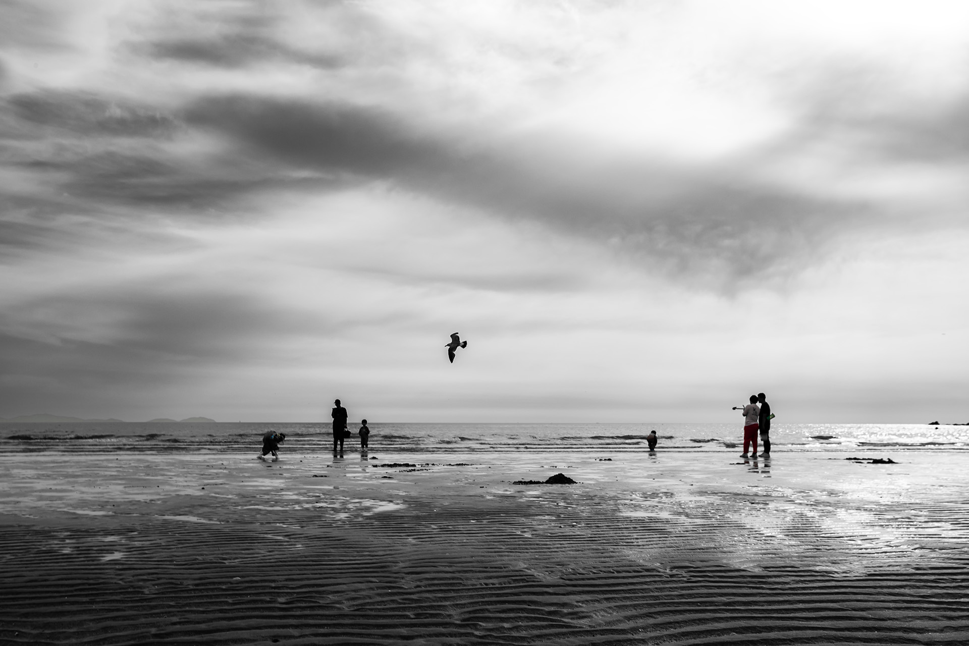 바닷가로 나들이 나온 가족들 모습이